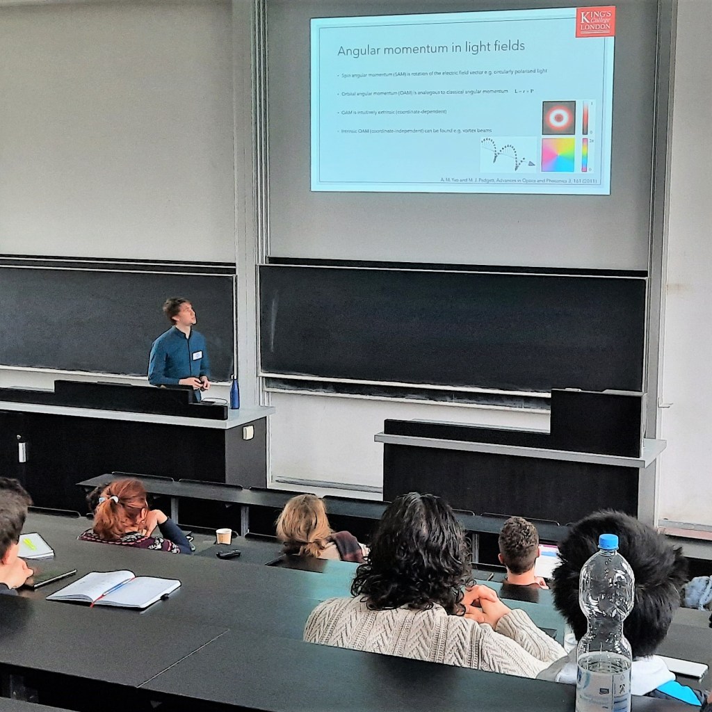 Well done to James S, who presented “Structured transverse orbital angular momentum probed by a levitated optomechanical sensor” at the DPG-Spring Meeting. The work was well received, and he gave a great talk.
